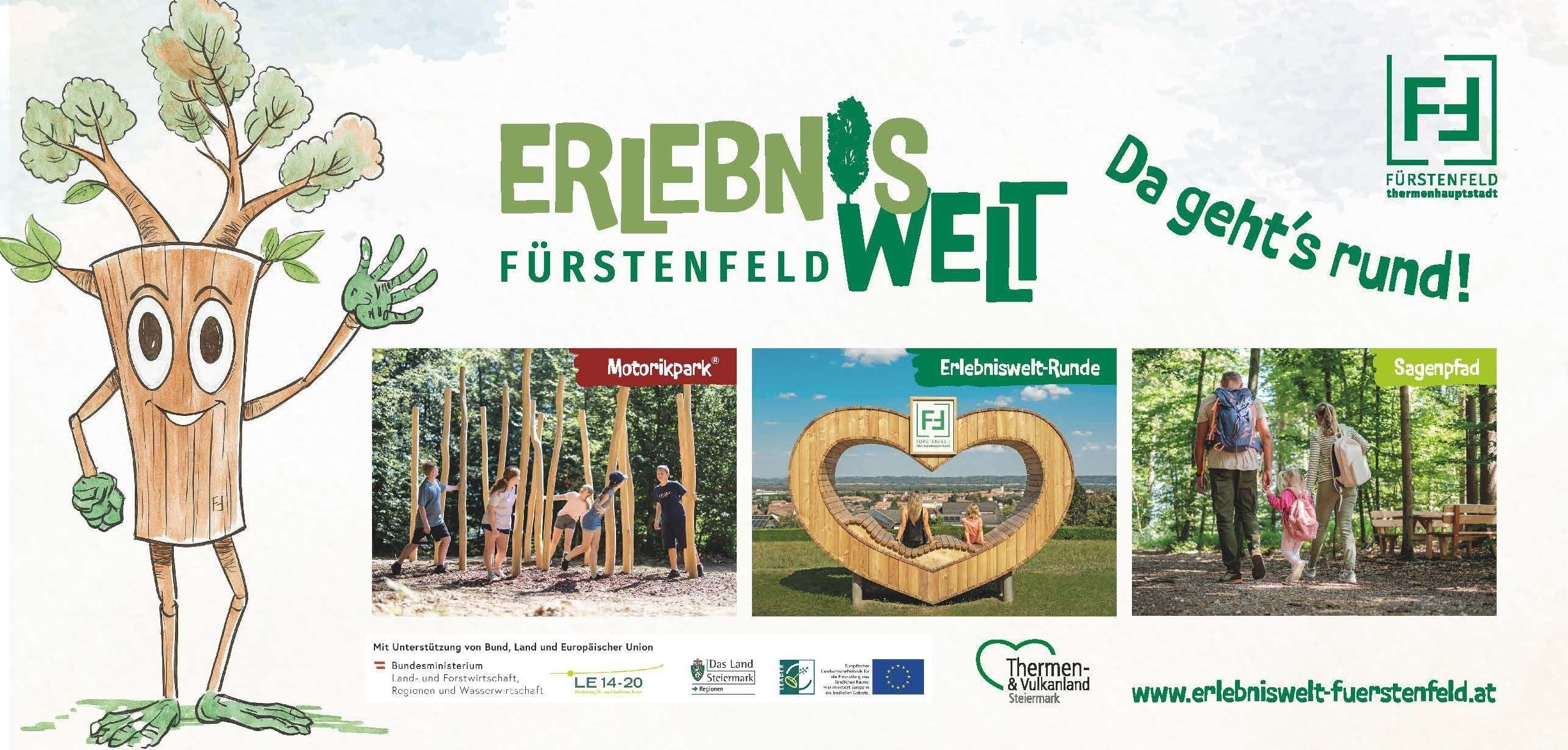Jetzt geht’s wahrlich rund in Fürstenfeld: Auf drei verschiedenen Rundwegen mit zahlreichen Highlights. Ob Erlebniswelt-Runde, Motorikpark® oder Sagenpfad: In der ERLEBNISWELT FÜRSTENFELD gibt es viel zu entdecken und viel zu erleben! Für Groß und Klein, für Jung und Alt und alle, die Freude an der Bewegung und an der Natur haben.