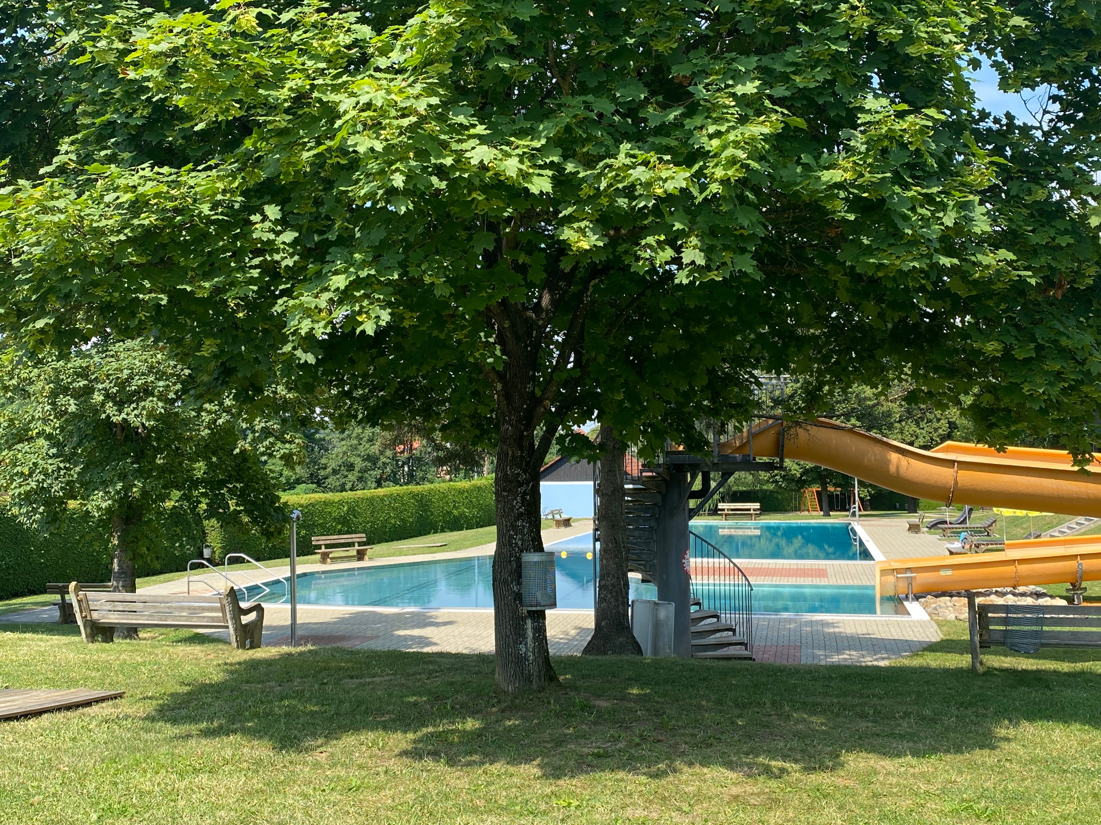 Wasserfreuden für die ganze Familie: Babybecken und 35 Meter Rutsche im Freibad