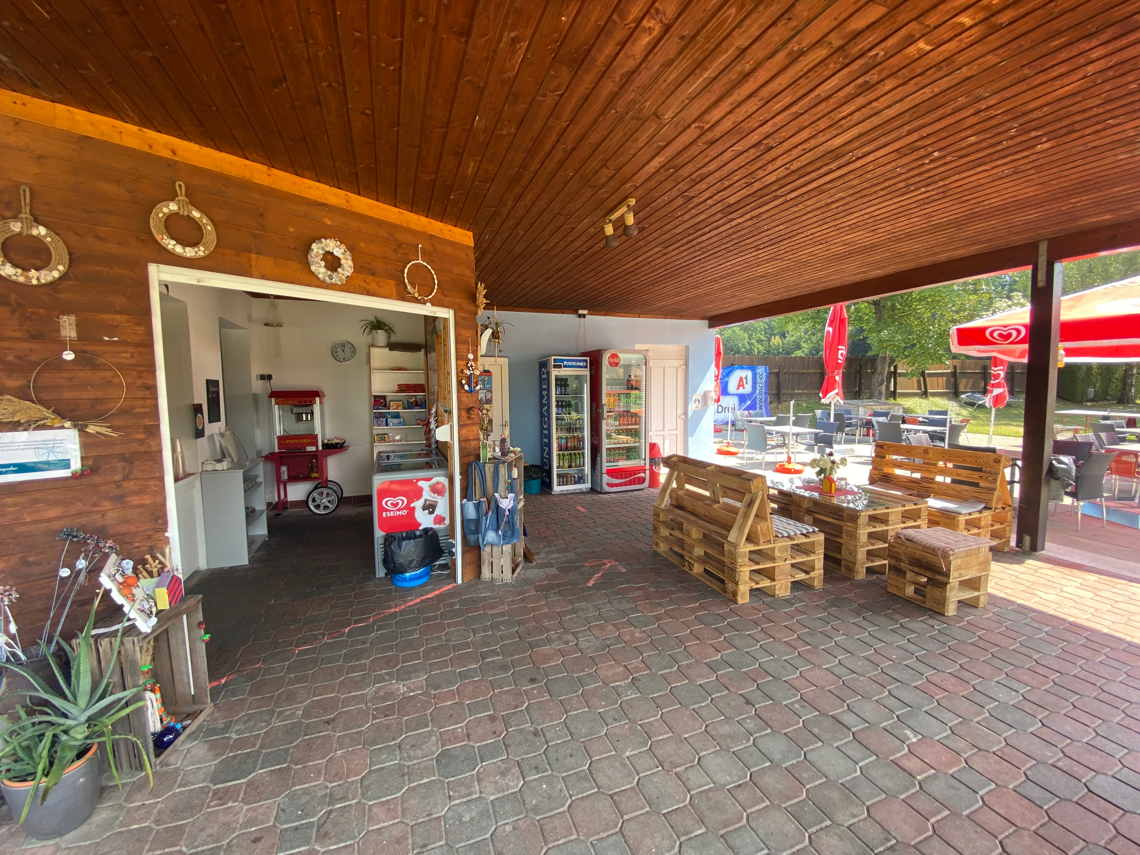 • Sanierung Gastgarten und Kantinenbereich und Ausstattung mit neuen Schirmen